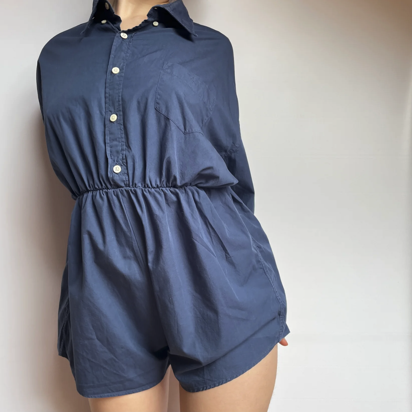 Mono azul marino hecho a partir de una camisa vintage de GANT.